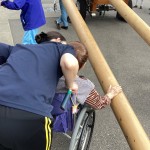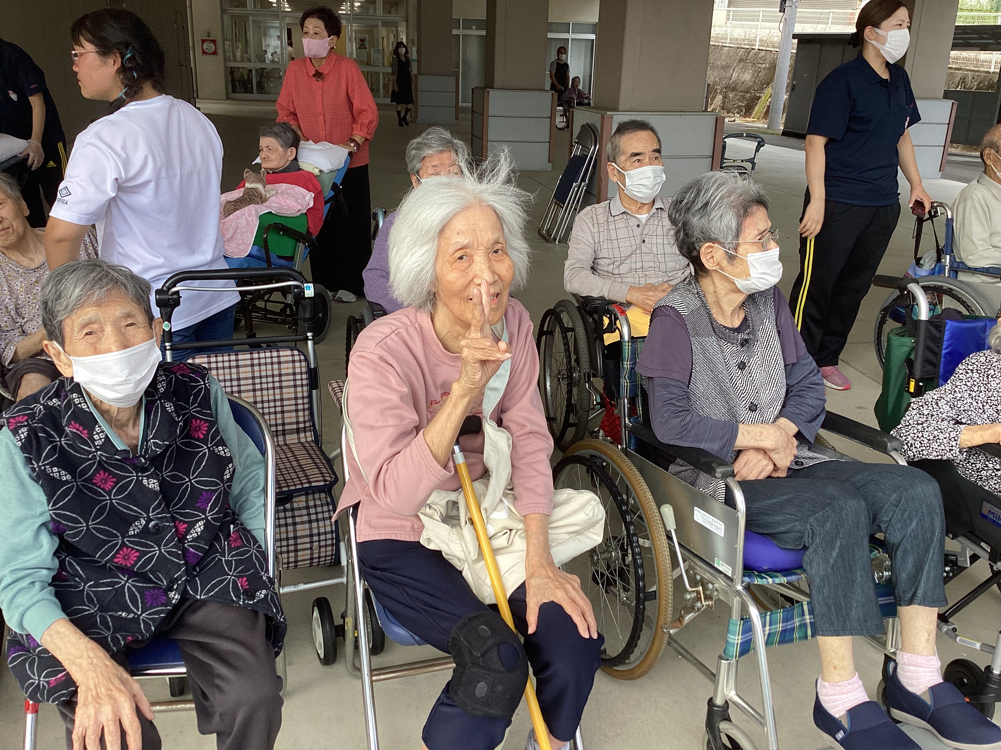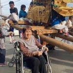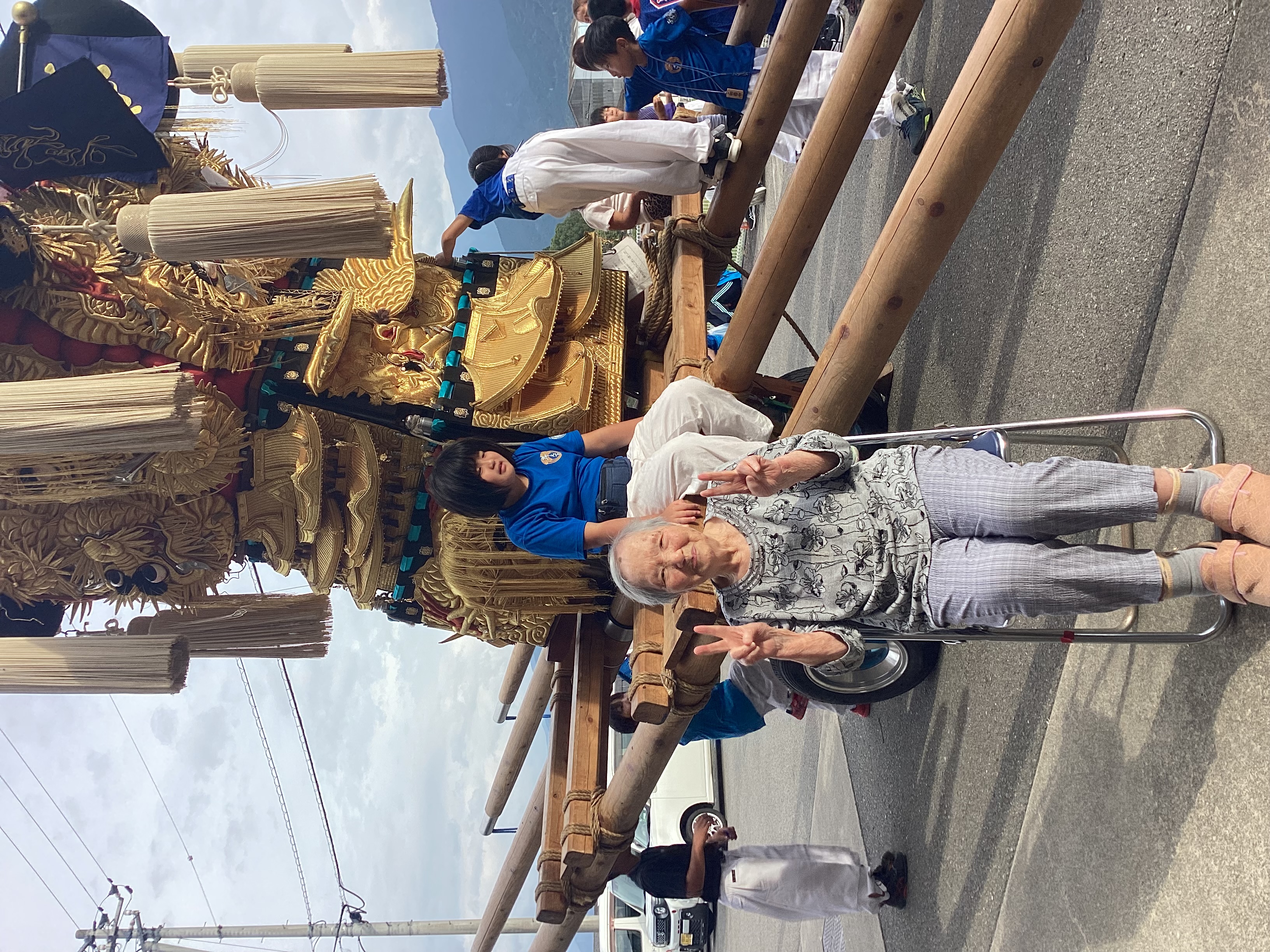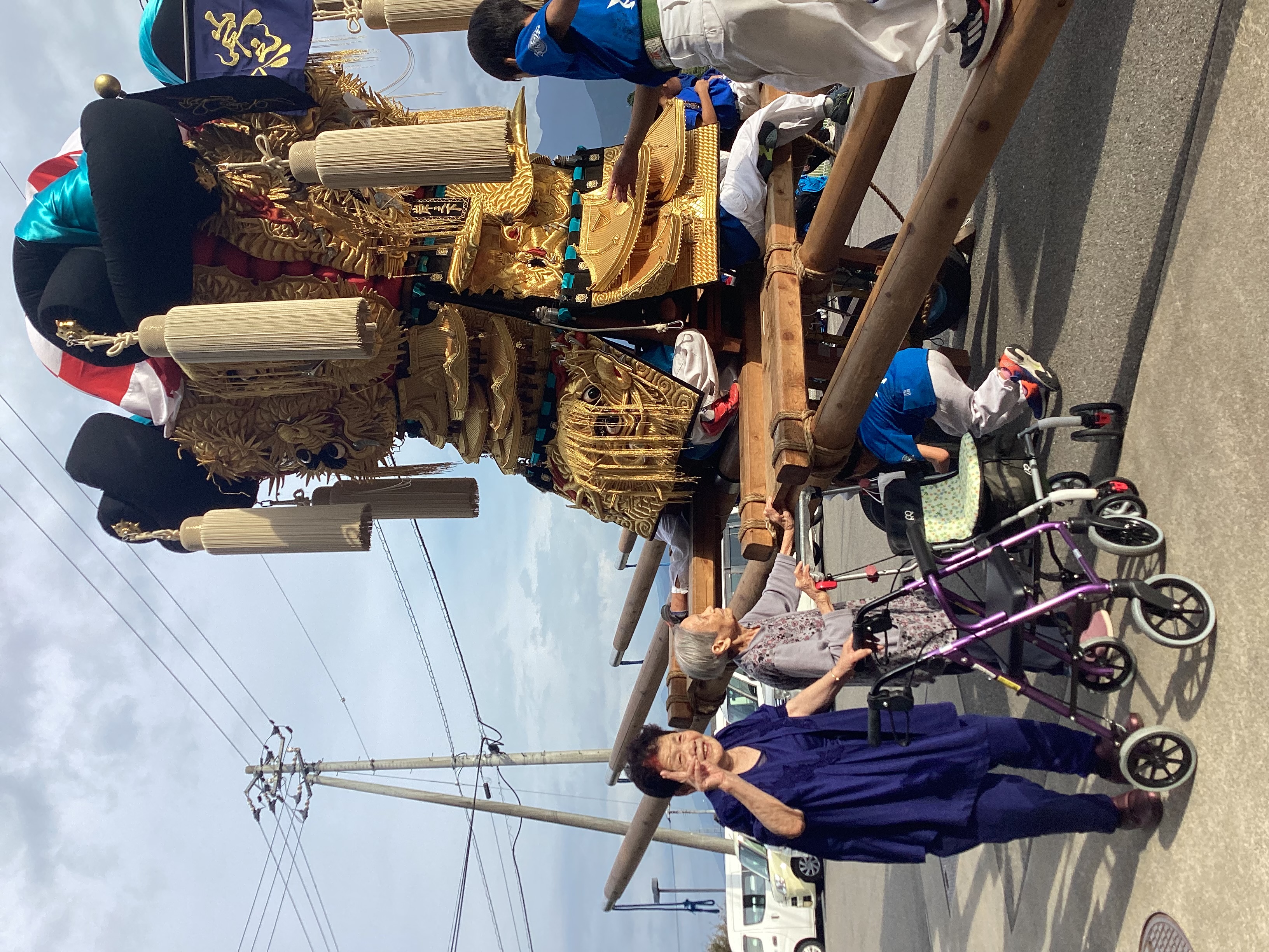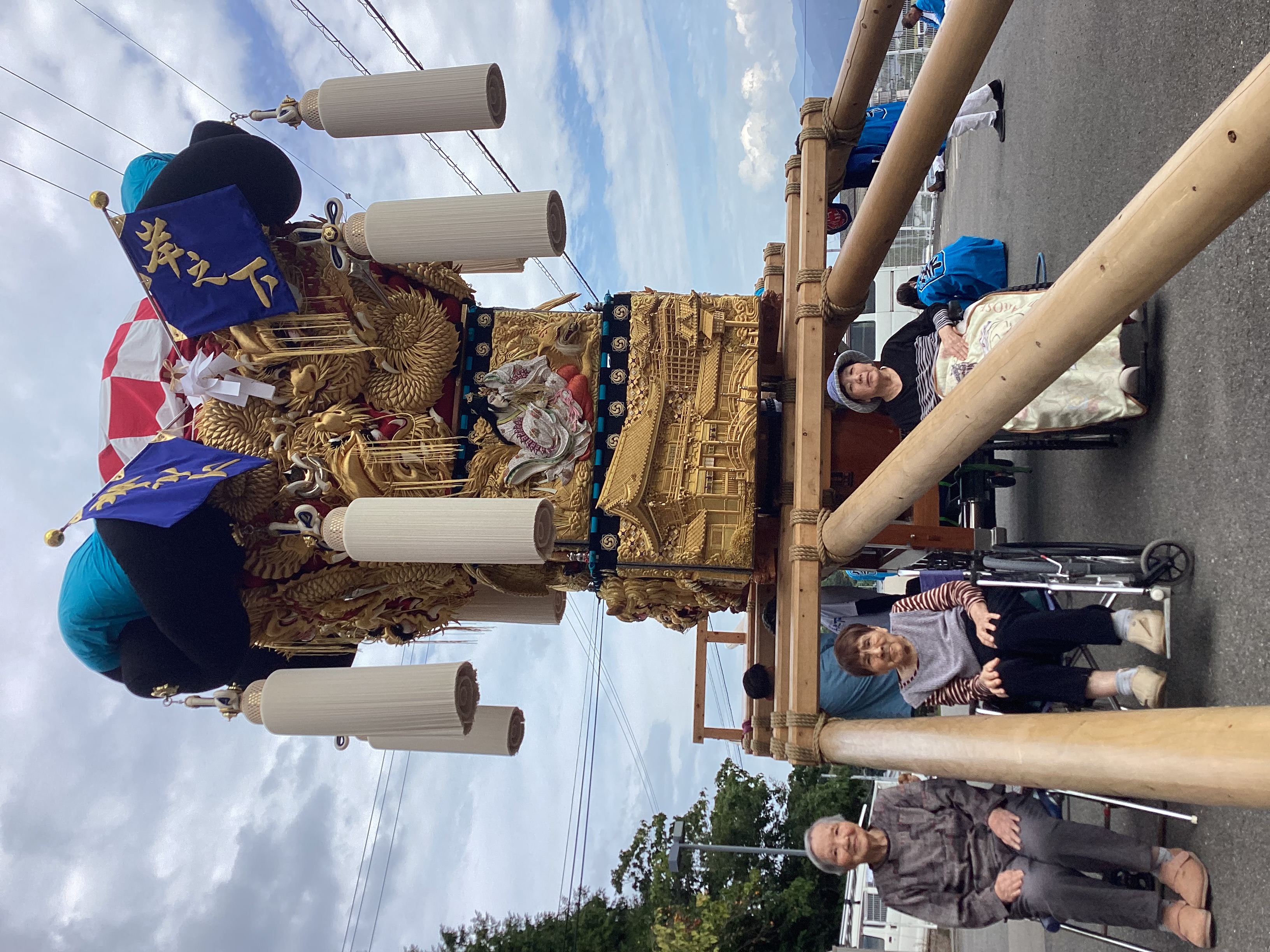 毎年岸の下太鼓台は施設入り口の急な坂を登ってきてくださいます。