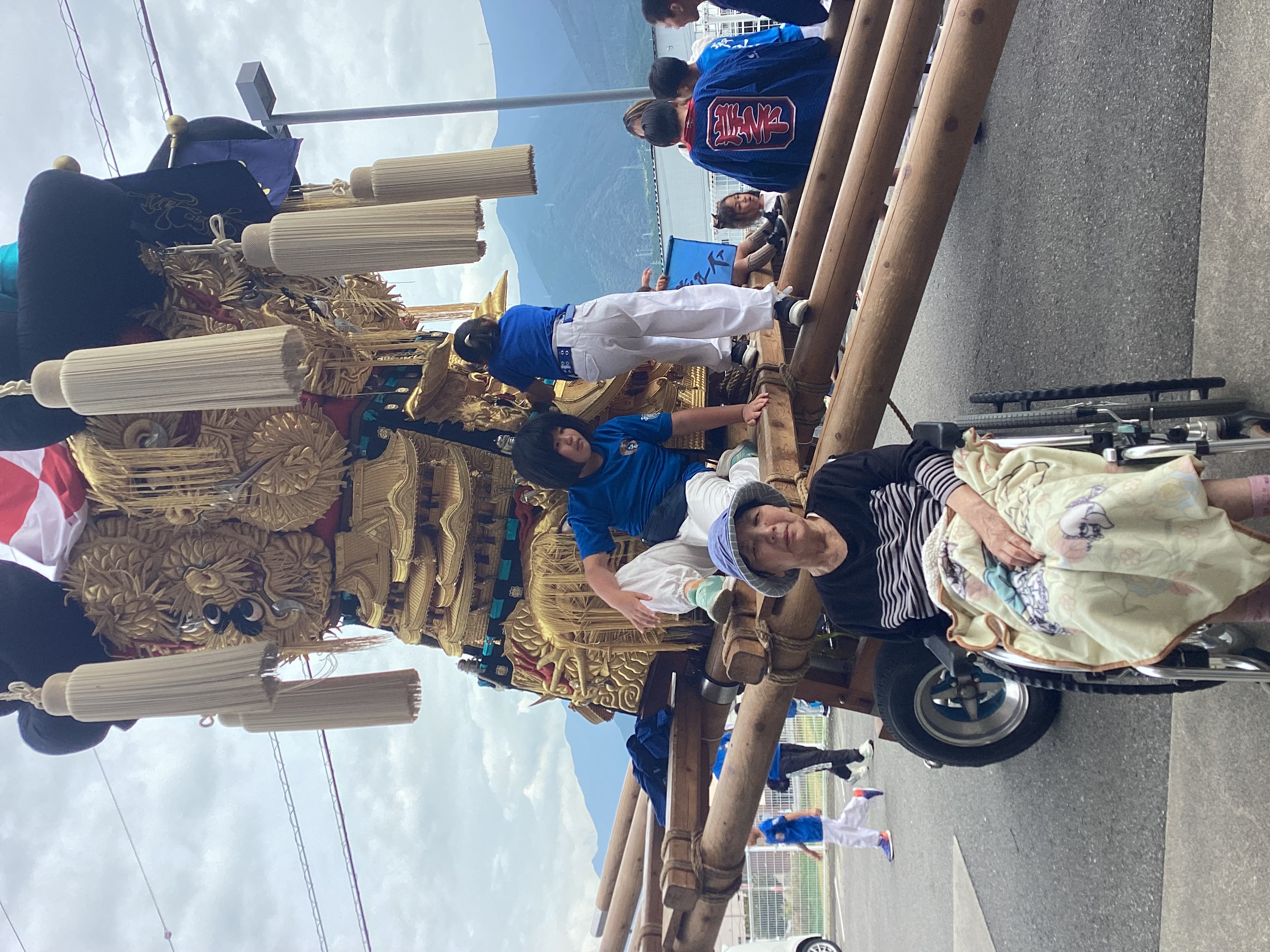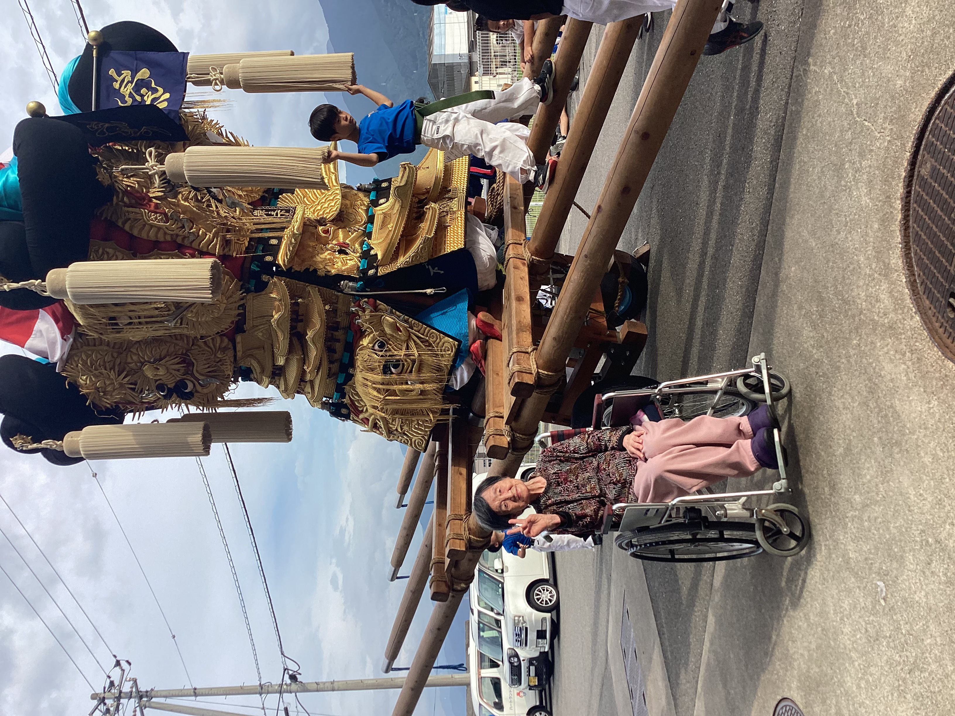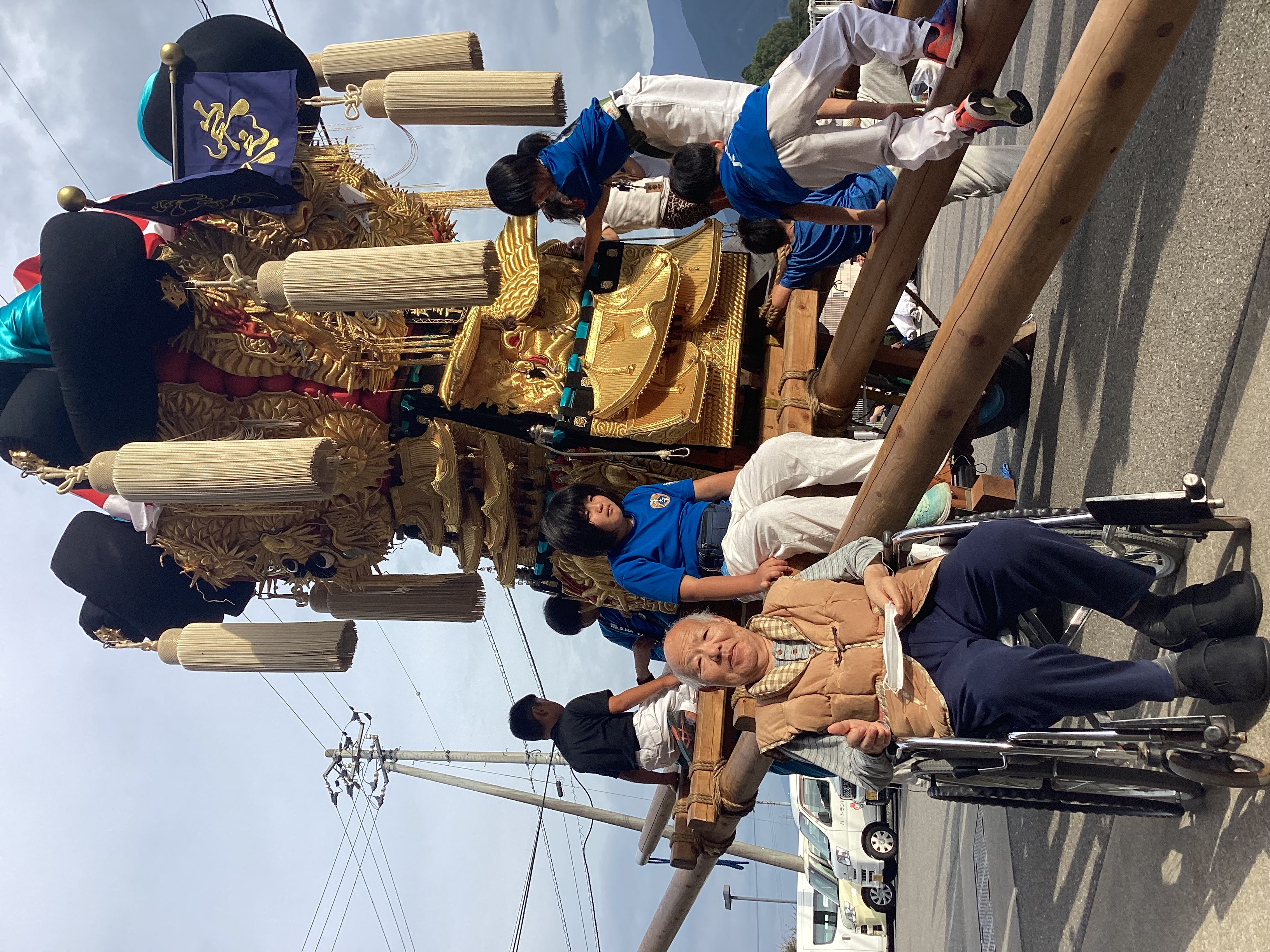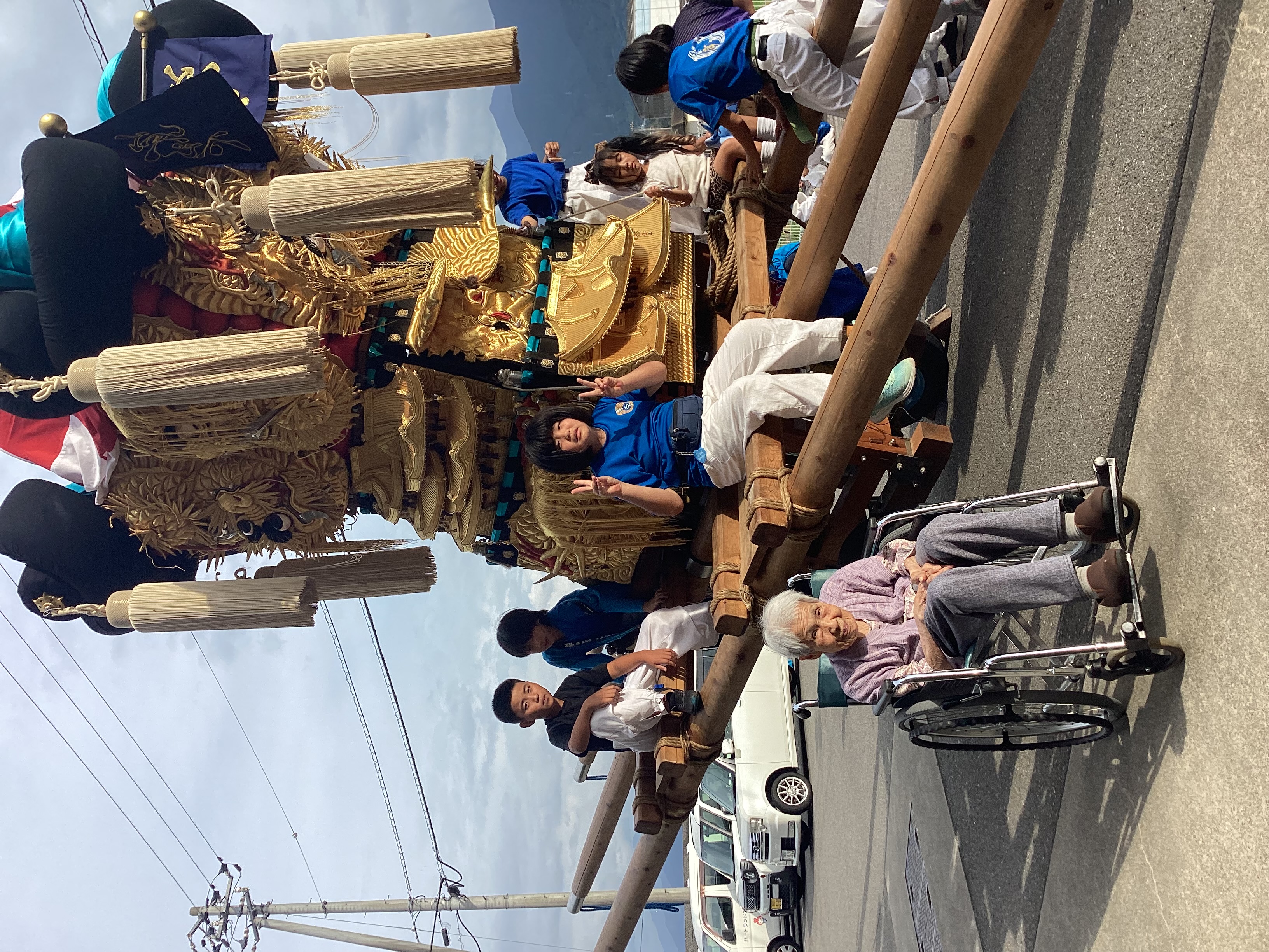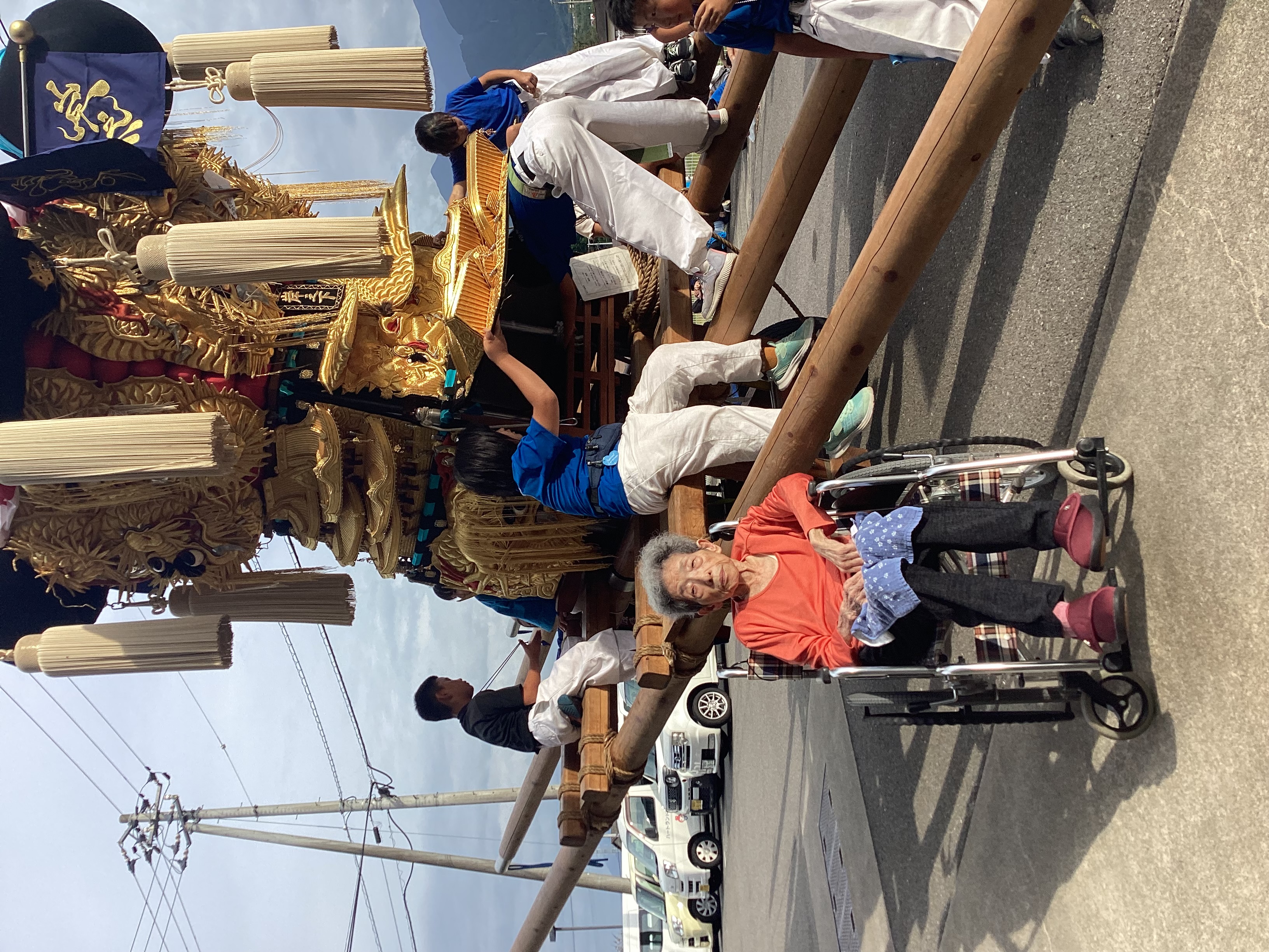 間近にみるから感じれる太鼓台の迫力と心臓に響く太鼓の音にいつも感動させられます。